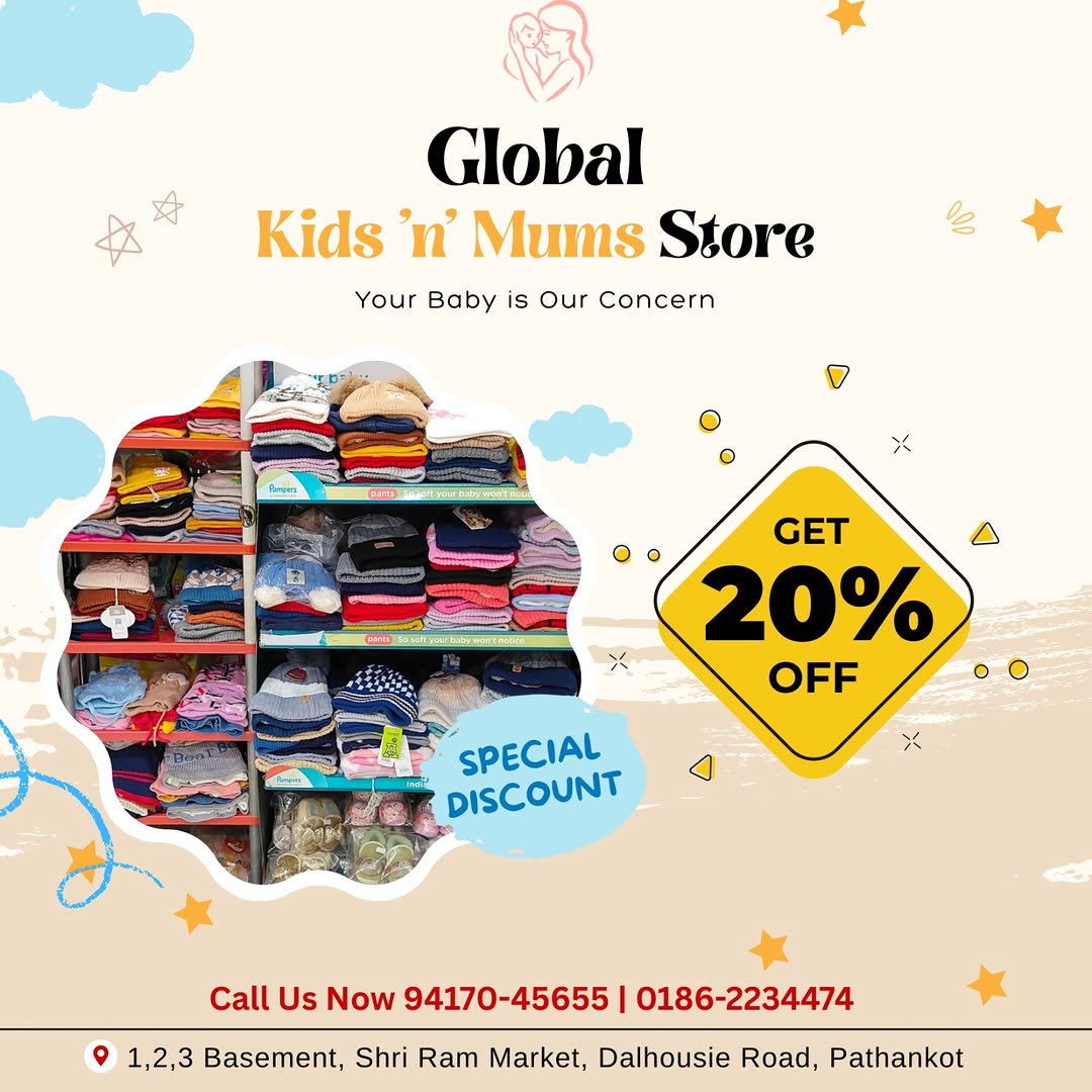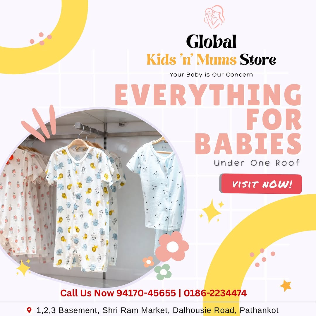 Global Kids N Mums Store is your one-stop destination for premium baby and kids essentials in Pathankot. The showroom offers a wide range of high-quality products designed to keep your little ones comfortable, stylish, and happy.
